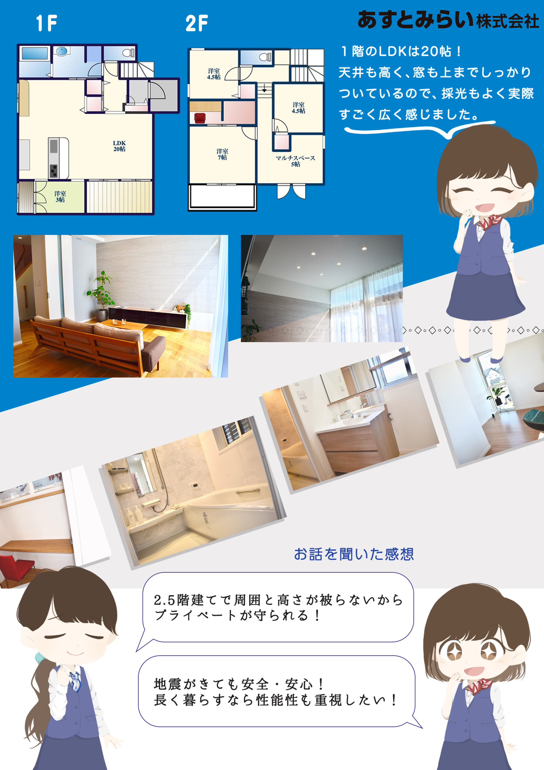 地震に強いから老後も安心して長く暮らせるお家、子育てのご家族様に嬉しい性能や工夫を感じられる間取り、わたしたちあすとみらいがおすすめさせていただきます✨