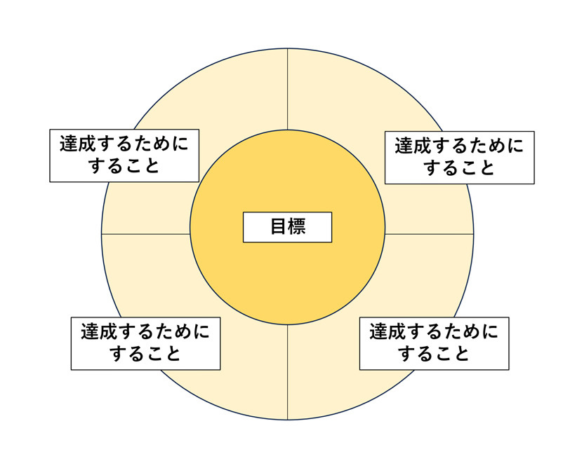 中心に目標を書いて、その周りにそのためにするべきことを書いていくというもの。